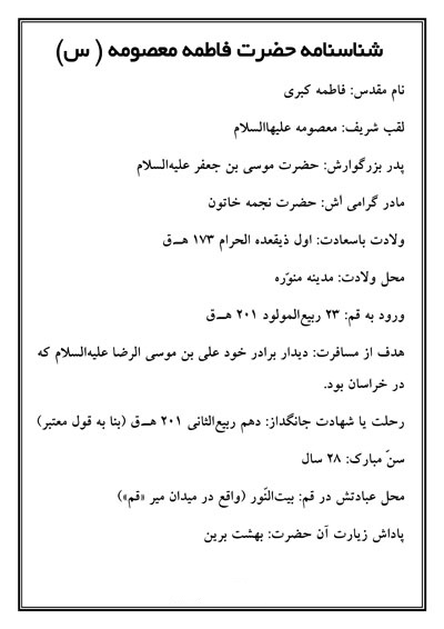 او، الگوی همه زنان عالمْ در زندگی، راز و نیاز، عبادت، اخلاق و ایمان بود. همسری مهربان و فداکار برای حضرت علی علیه السلام و مادری دل سوز و شایسته برای فرزندانش و الگویی نمونه برای همه زنان و مادران بود. او، دختر پیامبر بود و در اخلاق و عبادتْ مانندی نداشت. در هنگام ولادت با برکتش، آسمان از برکت وجود او نورْباران بود. می دانی نام آن حضرت چیست؟ آری درست حدس زدی، حضرت فاطمه زهرا علیهاالسلام .